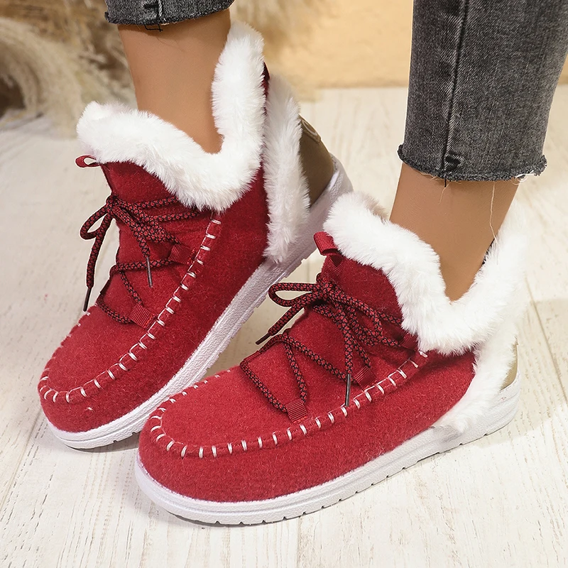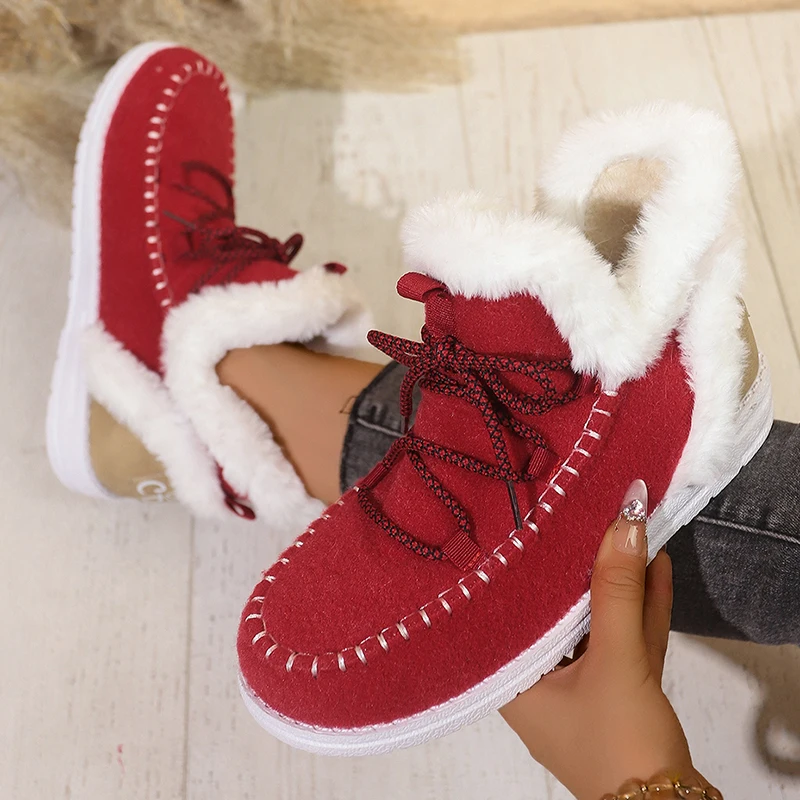 Bán buôn Red Thick Plush Lace Up Snow Boots Women Plus Size 43 Non Slip Sole Cotton Shoes Woman Comfortable Warm Fluffy Winter Boots giá rẻ và chiết khấu. Mua trực tiếp từ Shop1100287248 Store.