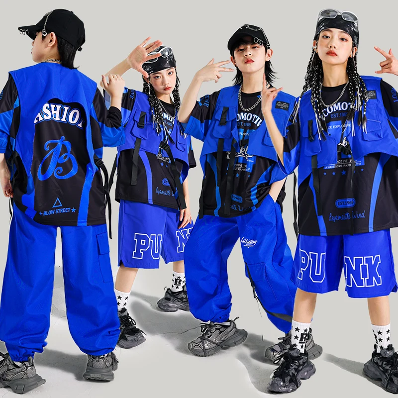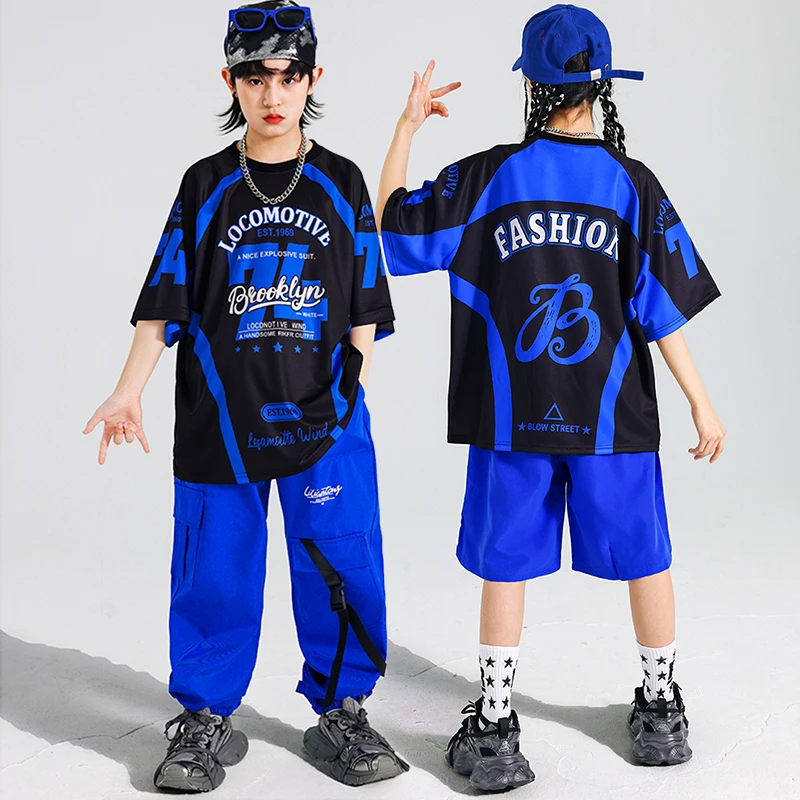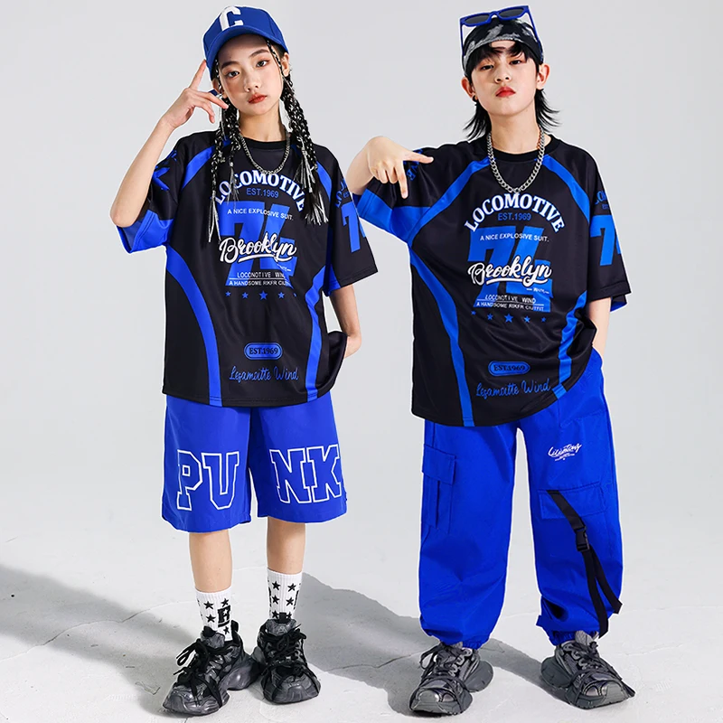 Bán buôn Boys Hip Hop Blue T-shirt Cargo Pants Street Dance Shorts Girls K-pop Jazz Costume Children Cool Clothes Set Kid Streetwear giá rẻ và chiết khấu. Mua trực tiếp từ LTB dance Store.